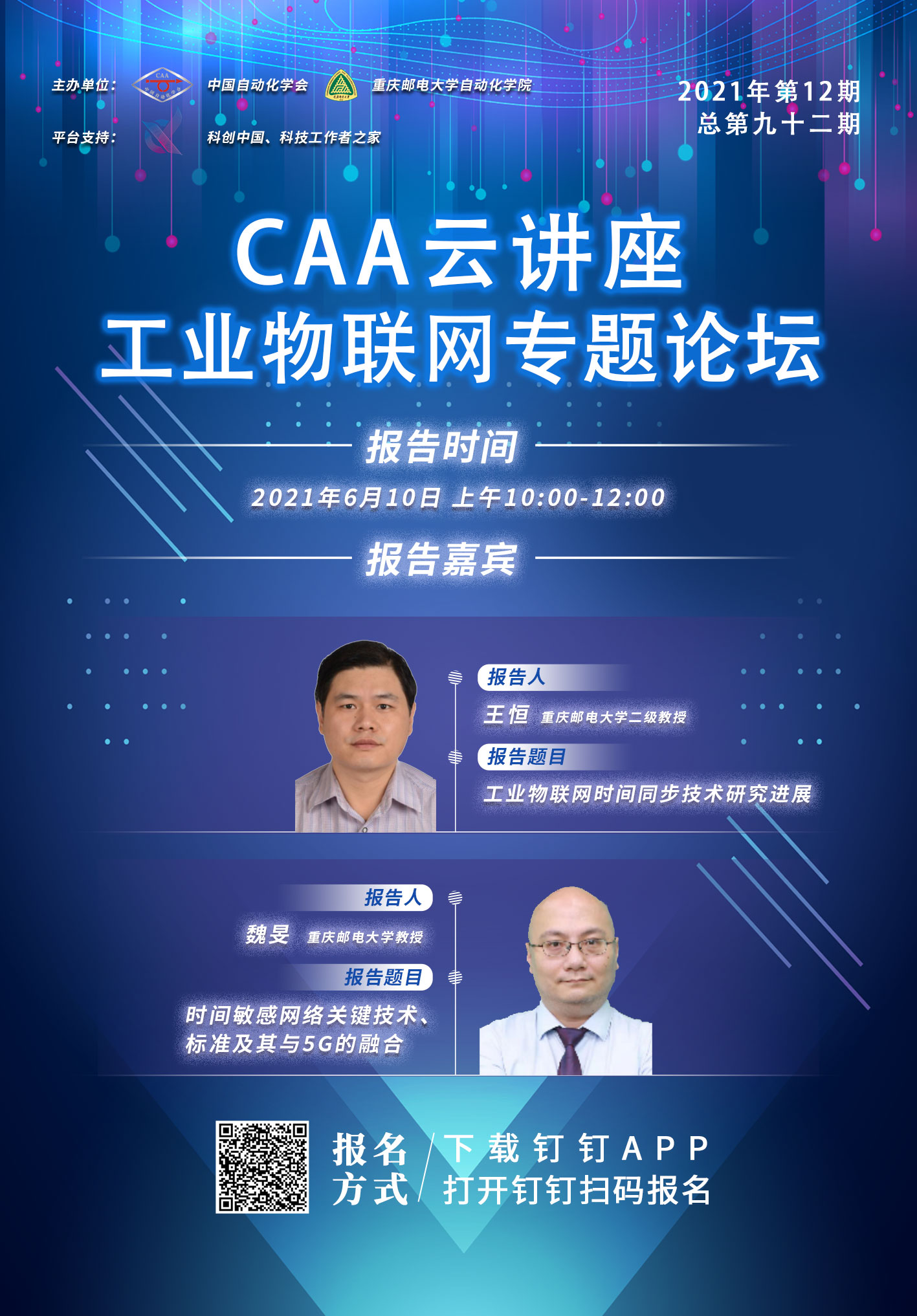 由中國自動化學(xué)會和重慶郵電大學(xué)自動化學(xué)院聯(lián)合舉辦的CAA云講座—工業(yè)物聯(lián)網(wǎng)專題論壇,將于2021年6月10日上午10:00-12:00舉行。本次論壇由重慶郵電大學(xué)二級教授王恒帶來報告“工業(yè)物聯(lián)網(wǎng)時間同步技術(shù)研究進(jìn)展”,重慶郵電大學(xué)教授魏旻帶來報告“時間敏感網(wǎng)絡(luò)關(guān)鍵技術(shù)、標(biāo)準(zhǔn)及其與5G的融合”。精彩內(nèi)容,敬請期待!