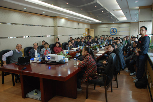 李德毅院士針對(duì)“不確定性表示的數(shù)學(xué)基礎(chǔ)”,“云模型及其數(shù)學(xué)性質(zhì)”,“云模型應(yīng)用”三個(gè)方面做了學(xué)術(shù)性的座談,并在互動(dòng)環(huán)節(jié)為在場(chǎng)的老師和同學(xué)解答疑問(wèn),精彩的論述贏得了陣陣掌聲。