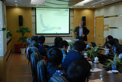 講座首先介紹了如何利用激光雷達、攝像機等傳感器完成對周圍環境的3D感知,除此之外還結合了從數字地圖中獲取到的與環境相關的先驗知識對感知結果的做了進一步的分析。講解過程中,Christoph Stiller教授還進行了精彩的視頻展示,從而將感知到的抽象數據通過可視化的手段生動的展示給在場的老師和同學。Christoph Stiller教授指出對環境的感知和理解不僅僅是可以進行傳統意義上的測量更重要的是為智能車輛的自主決策和軌跡規劃服務,因此,接下來他對軌跡規劃等問題做了進一步的講解。最后,Christoph Stiller教授對無人駕駛技術領域的研究及相關的無人車比賽進行了介紹,并結合自己所在的“AnnieWAY”無人車團隊參加比賽的情況給與會的老師和同學做了豐富而細致的講述,使大家對無人駕駛技術的歷史和發展現狀有了一個整體的、形象的認識。