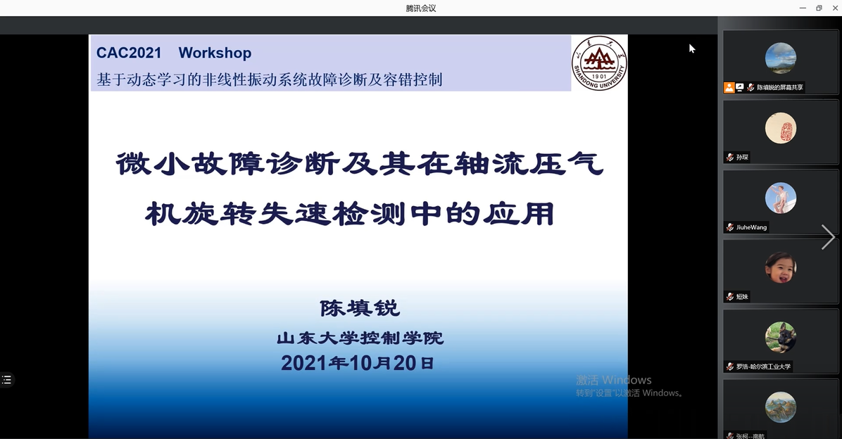 2021年10月20日,為慶祝中國自動化學會成立六十周年,中國自動化大會Workshop“基于動態學習的非線性振動系統故障診斷及容錯控制” 采用線上騰訊會議的方式成功召開。