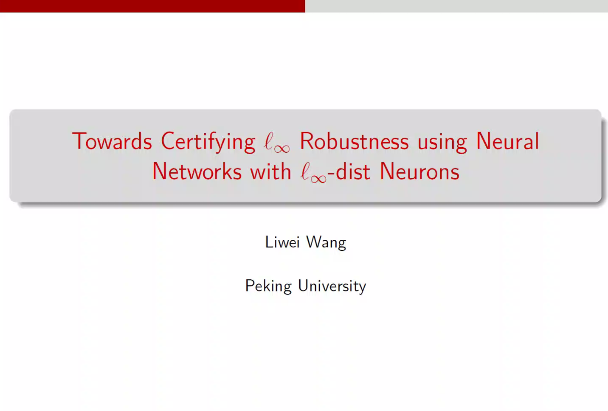 王立威教授的報(bào)告題目是“應(yīng)用?∞-距離神經(jīng)網(wǎng)絡(luò)驗(yàn)證?∞魯棒性”。王教授由對(duì)抗魯棒性研究入手,分析噪聲對(duì)深度神經(jīng)網(wǎng)絡(luò)重要影響,發(fā)現(xiàn)深度學(xué)習(xí)對(duì)微小對(duì)抗擾動(dòng)異常敏感。王教授致力于尋找能夠抵抗?∞波動(dòng)的新型神經(jīng)網(wǎng)絡(luò),設(shè)計(jì)?∞-距離神經(jīng)元,基于該神經(jīng)元的網(wǎng)絡(luò)是關(guān)于?∞范式的1-Lipschitz函數(shù),這嚴(yán)格保證基于輸出結(jié)果邊沿的認(rèn)證魯棒性。該網(wǎng)絡(luò)的Lipschitz常數(shù)小于等于1,圍繞該網(wǎng)絡(luò)開展進(jìn)一步研究,在MNIST、CIFAR-10、TinyImageNet三個(gè)常用數(shù)據(jù)集上的指標(biāo)表明該網(wǎng)絡(luò)具有良好的性能。