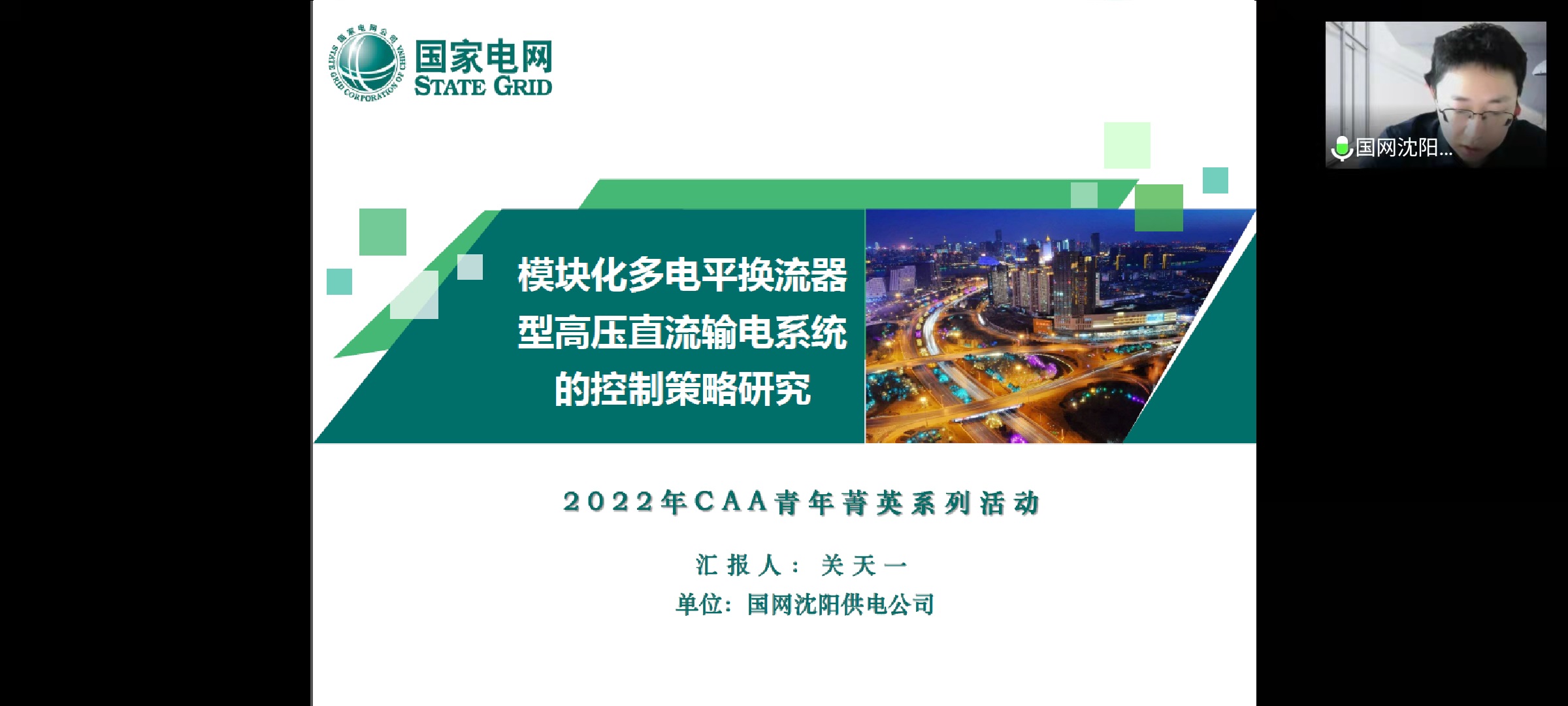 第五位報告人為來自國家電網(wǎng)沈陽供電公司的關天一工程師,報告題目為“模塊化多電平換流器型高壓直流輸電系統(tǒng)的控制策略研究”。在實現(xiàn)雙碳目標的過程中,發(fā)展柔性直流輸電技術已成為重要研究內容。為此,報告人從穩(wěn)態(tài)、暫態(tài)及系統(tǒng)級三個方面提出了MMC控制策略,保證了系統(tǒng)的運行性能及經(jīng)濟性。