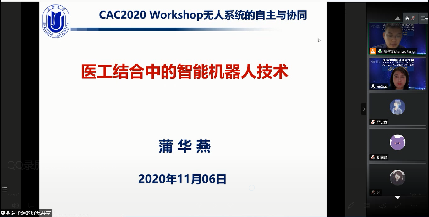 本次研討會下半場的報告由上海大學蒲華燕教授帶來,蒲教授以“醫工結合中的智能機器人技術”為主題,針對生物力學的重要科學內涵及其應用,深入講述了一種可對多種尺度生物樣本進行細胞三維力學激勵及行為表征的智能機器人系統。該系統融合了矢量磁場調控、高精度測量、精準定點微注射等多項關鍵技術。可在模擬生理狀態下,面向單細胞、組織、胚胎等不同尺度生物樣本,對其細胞及細胞內部亞結構進行精準三維力學激勵和高分辨力學行為表征。為揭示生物力學在調控細胞及生命體行為的作用機制提供數據支撐,為腫瘤學、發育學、腦科學等生物醫學的發展提供重要科學儀器,同時也為基于生物物理體征的信號通路探索及相關藥物研發提供創新手段。蒲老師的報告涉及到精密微觀測量,內容非常震撼。