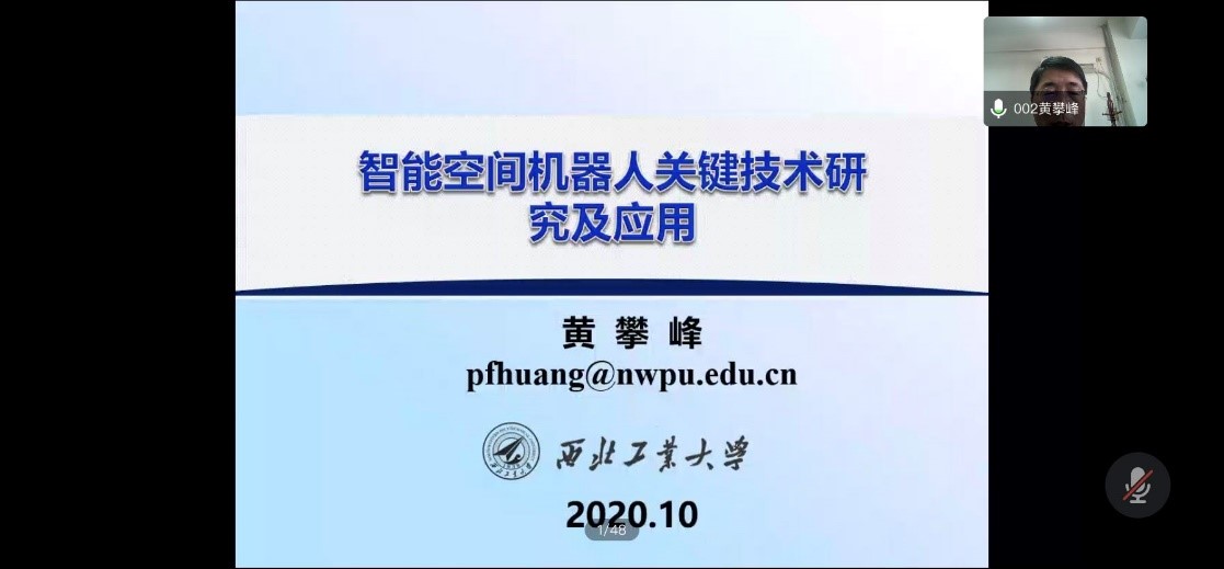 西北工業大學黃攀峰教授作“智能空間機器人關鍵技術研究及應用”報告。黃攀峰教授的報告闡述了空間機器人的研究背景、空間機械臂遙操作技術、及空間繩系機器人技術。最后,針對人工智能背景下空間機器人及遙操作技術的發展趨勢進行展望與思考。