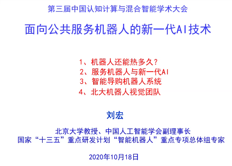 劉宏教授的報(bào)告題目為“面向公共服務(wù)機(jī)器人的新一代AI技術(shù)”。劉宏教授系統(tǒng)深入地分析了人類工具發(fā)展的三大規(guī)律,提出智能機(jī)器人是人類工具發(fā)展最高階段的主要觀點(diǎn)。通過對比工業(yè)機(jī)器人、特種機(jī)器人和服務(wù)機(jī)器人技術(shù)與產(chǎn)業(yè)的發(fā)展趨勢,指出發(fā)展公共服務(wù)機(jī)器人的重要性。論述了新一代人工智能技術(shù)在智能導(dǎo)購機(jī)器人系統(tǒng)中的應(yīng)用。