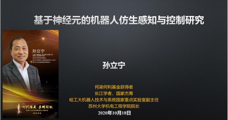 孫立寧教授的報(bào)告題目是“基于神經(jīng)元的機(jī)器人仿生感知與控制”。報(bào)告從神經(jīng)元建模方法;基于神經(jīng)元模型的環(huán)境感知方法;以及基于神經(jīng)元模型的機(jī)器人運(yùn)動(dòng)控制方法等三個(gè)方面進(jìn)行介紹最新研究成果。孫教授表示針對機(jī)器人向智能化發(fā)展趨勢與需求,仿生感知與智能是重要的前沿研究方向之一。神經(jīng)元是生物處理外部感知信息以及產(chǎn)生相應(yīng)控制的基礎(chǔ),實(shí)現(xiàn)對復(fù)雜環(huán)境的多維認(rèn)知,生物體中樞神經(jīng)元可在無大腦控制指令下自發(fā)產(chǎn)生周期性信號實(shí)現(xiàn)節(jié)律性運(yùn)動(dòng)控制,從而將大腦從繁重的底層計(jì)算與控制中釋放出來。