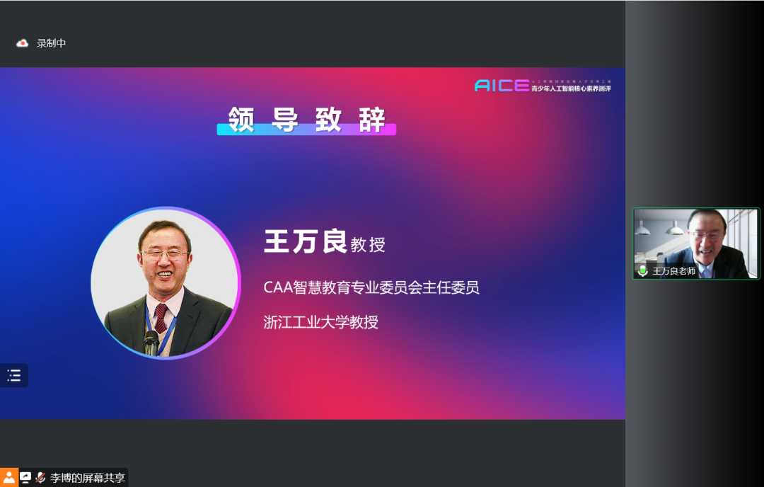 中國自動化學會智慧教育專業委員會主任、浙江工業大學王萬良教授在會上發表演講,王教授表示,通過大家的努力,“青少年人工智能核心素養測評”已經初步建成了一個題庫,題庫的內容要不斷完善、擴充,不斷適應新的認識,適應不同年齡段學生的思維特點,讓測評的大綱和題庫能夠和人工智能素養的培育同步,尤其是面對小學生和初中生的初級和中級題庫里,要有生動的、有啟發性的、能夠融會貫通的題目。