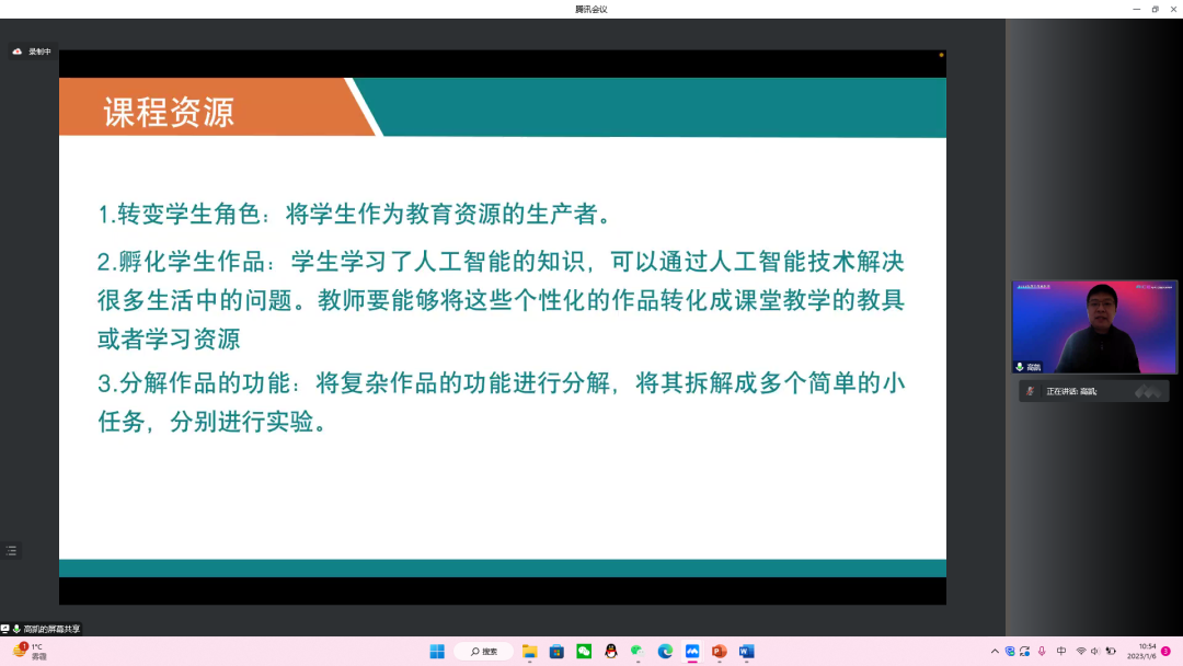 中國自動化學會智慧教育專業委員會副秘書長、北京市東城學科帶頭人、北京市第二中學的高凱老師進行了《中小學人工智能人才培育案例分享》,高老師認為,中小學的人工智能課程是一門實踐性的課程,應更多以實踐的方式讓學生進行知識的理解。他經常在科技類課程當中提到建構主義的教育理念,希望學生在實踐過程中不斷地將知識和技能進行內化,真正轉化成學生自己的經驗;同時要把技術向善的理念傳遞給學生。