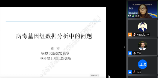 會議邀請中國科學院北京基因組研究所的章張研究員、中國科學院上海巴斯德研究所的郝沛研究員、清華大學曾堅陽副教授和王光宇博士作學術報告。他們分別報告了國家生物信息中心新冠病毒信息庫的構建、新冠病毒基因組分析、針對新冠肺炎老藥新用的機器學習探索和新冠肺炎臨床診斷中的AI影響分析等被國內外同行高度認可的代表性研究成果,分析了研究遇到的問題和挑戰。參會同行們圍繞報告進行深入、熱烈的討論。