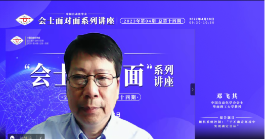 2023年第四期(總第十四期)會士面對面講座于2023年4月18日上午成功召開,中國自動化學會會士、華南理工大學鄧飛其教授,將帶來題為“隨機系統控制:于不確定環境中實現確定目標”的報告。