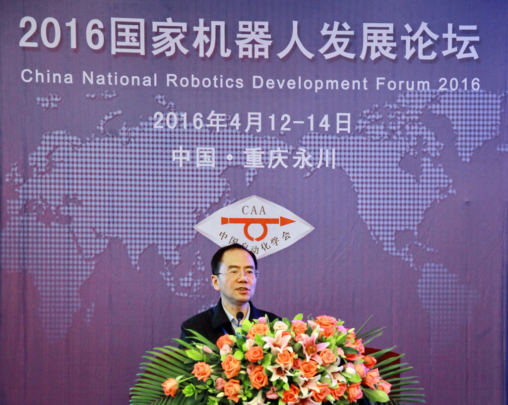 為促進智能機器人基礎理論研究、成果原始創新和高技術開發,增強我國智能機器人自主研發水平和工業基礎能力,推動其在智能制造、智慧生活、智能產業和國防安全領域的深入應用,助力產業轉型升級。由中國自動化學會、重慶市科學技術學會和重慶市永川區人民政府聯合主辦的“2016國家機器人發展論壇”于2016年4月13-14日在重慶江鴻國際大飯店隆重召開。本次大會安排了6個特邀主旨報告、23個分會場報告和機器人應用及產業展示,匯聚了來自科研院所、高等院校、領袖企業的負責人、院士、學術界和工業界代表400余人,會議規模宏大,現場座無虛席,反響熱烈。