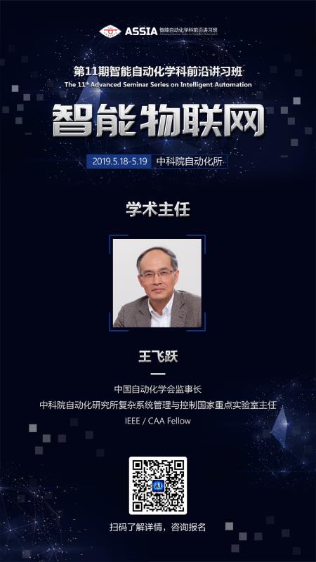 中國自動化學會將于2019年5月18-19日在北京·中國科學院自動化研究所舉辦第11期智能自動化學科前沿講習班,主題為“智能物聯網”,此次講習班由中國自動化學會監事長,中國科學院自動化研究所復雜系統管理與控制國家重點實驗室主任王飛躍和阿里云物聯網首席科學家丁險峰共同擔任學術主任。