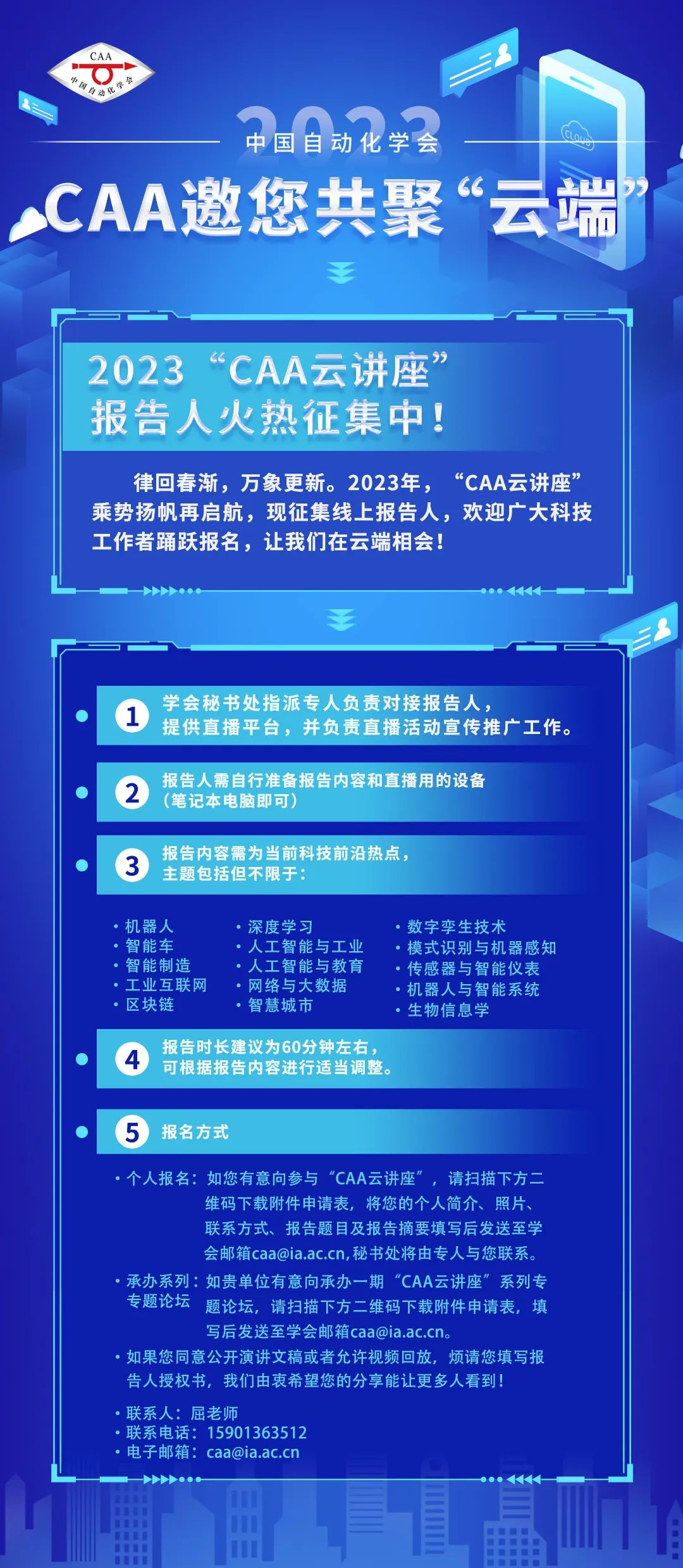 律回春漸,萬象更新。2023年,“CAA云講座”乘勢揚帆再啟航,現(xiàn)征集線上報告人,歡迎廣大科技工作者踴躍報名,讓我們在云端相會!