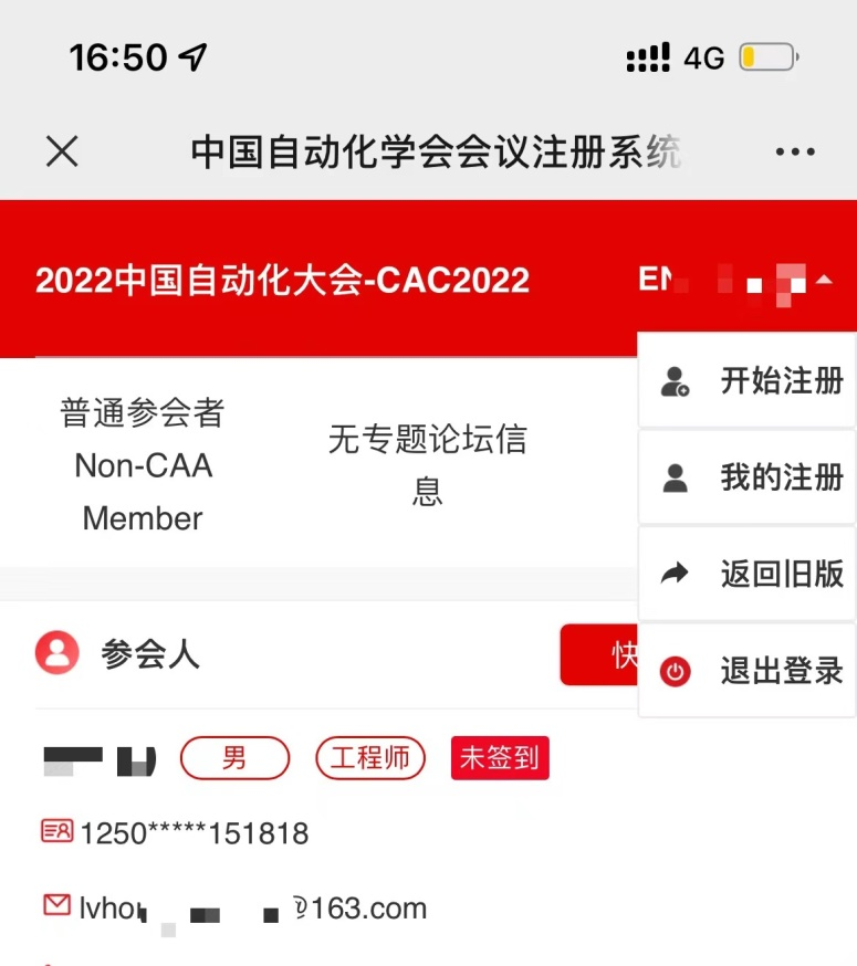 查看注冊信息:登陸注冊系統,右上角姓名部分,點擊“我的注冊”查看已完成注冊。