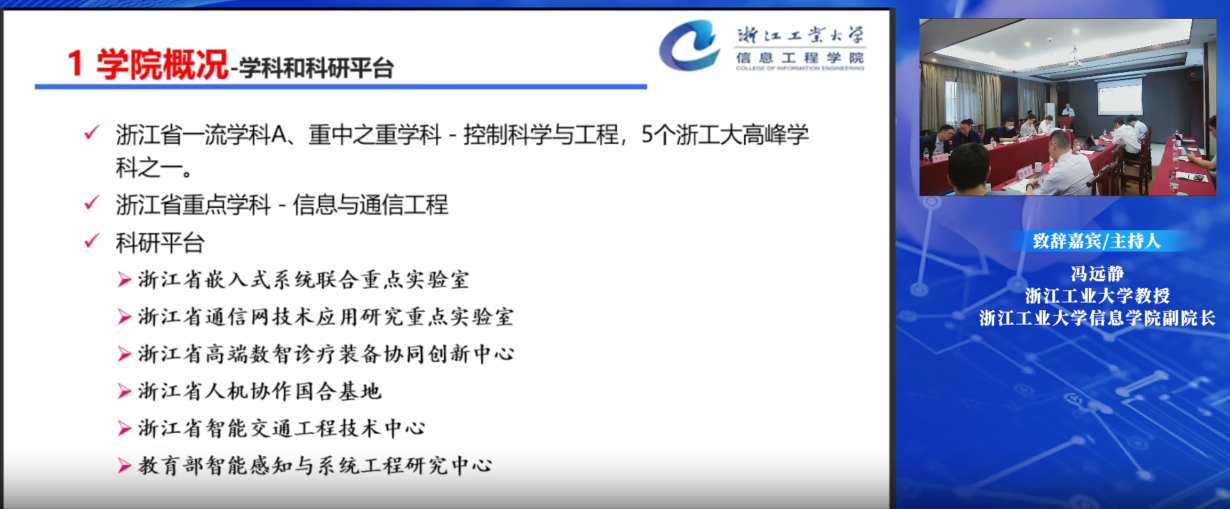 論壇首先由主席馮遠靜教授致辭、并就浙江工業大學信息學院科研情況進行了介紹。