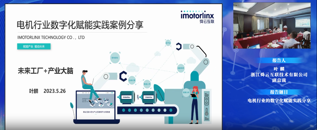 第六位報告人是浙江舜云互聯技術有限公司葉麟副總裁。報告題目為“電機行業的數字化賦能實踐分享”,報告介紹了機產業大腦工業互聯網平臺:(1)專家診斷系統。電機產業大腦工業互聯網平臺電機全生命周期服務專家診斷系統融合語音識別技術、自然語言處理技術、大數據機器學習技術和人機交互技術等四大技術。(2)行業多元、異構數據融合處理與集成。電機產業大腦工業互聯網平臺采用了跨企業、跨平臺的工業通訊網絡,可實現產業鏈內多元、異構數據的雙向通訊。(3)低代碼開發技術,降低了中小企業技術創新的門檻。(4)微服務容器框架,提高APP開發效率。
