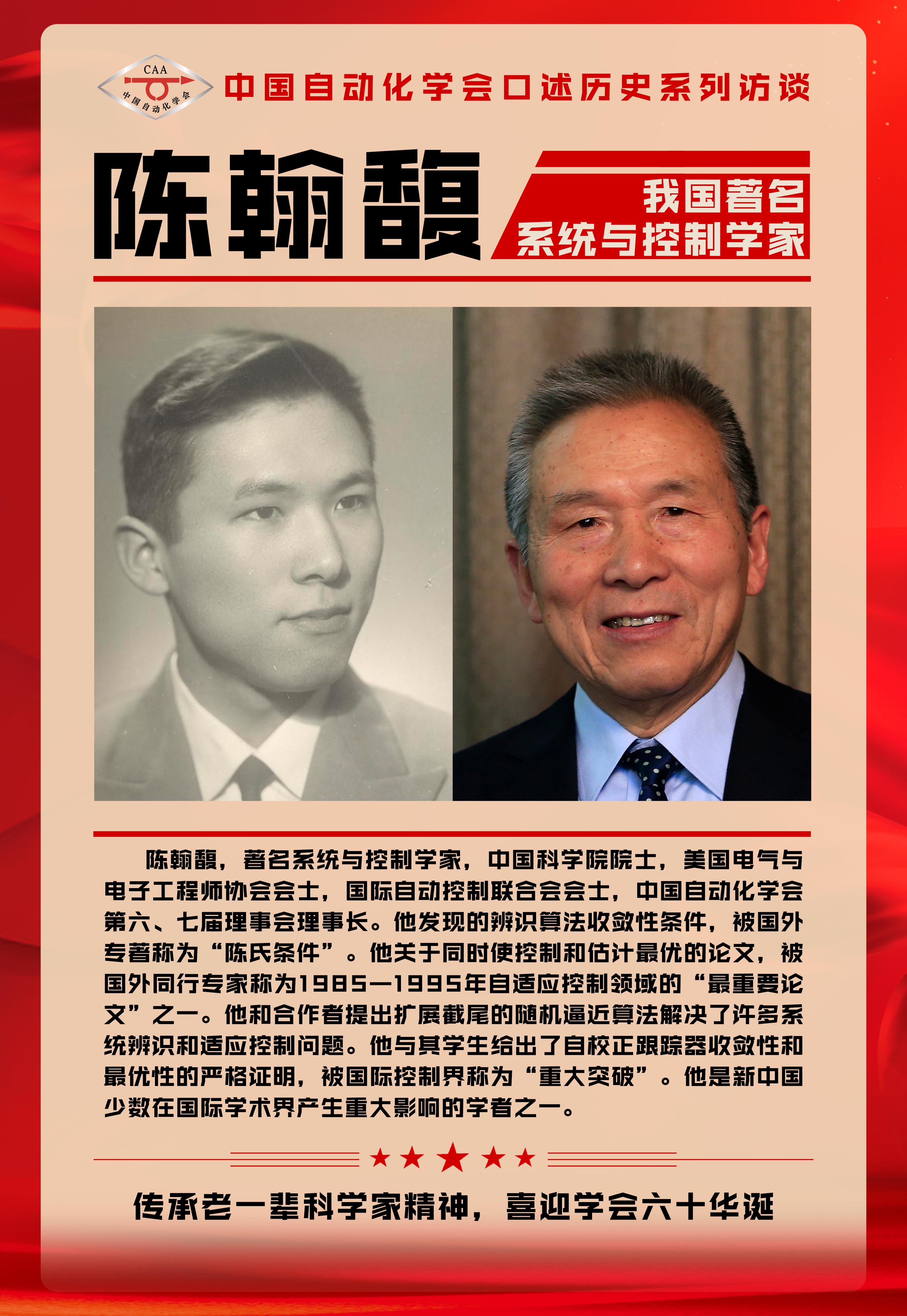 本期學會采訪的是陳翰馥院士。陳翰馥,著名系統與控制學家,中國科學院院士,美國電氣與電子工程師協會會士,國際自動控制聯合會會士,中國自動化學會第六、七屆理事會理事長。他發現的辨識算法收斂性條件,被國外專著稱為“陳氏條件”。他關于同時使控制和估計最優的論文,被國外同行專家稱為1985—1995年自適應控制領域的“最重要論文”之一。他和合作者提出擴展截尾的隨機逼近算法解決了許多系統辨識和適應控制問題。他與其學生給出了自校正跟蹤器收斂性和最優性的嚴格證明,被國際控制界稱為“重大突破”。他是新中國少數在國際學術界產生重大影響的學者之一。