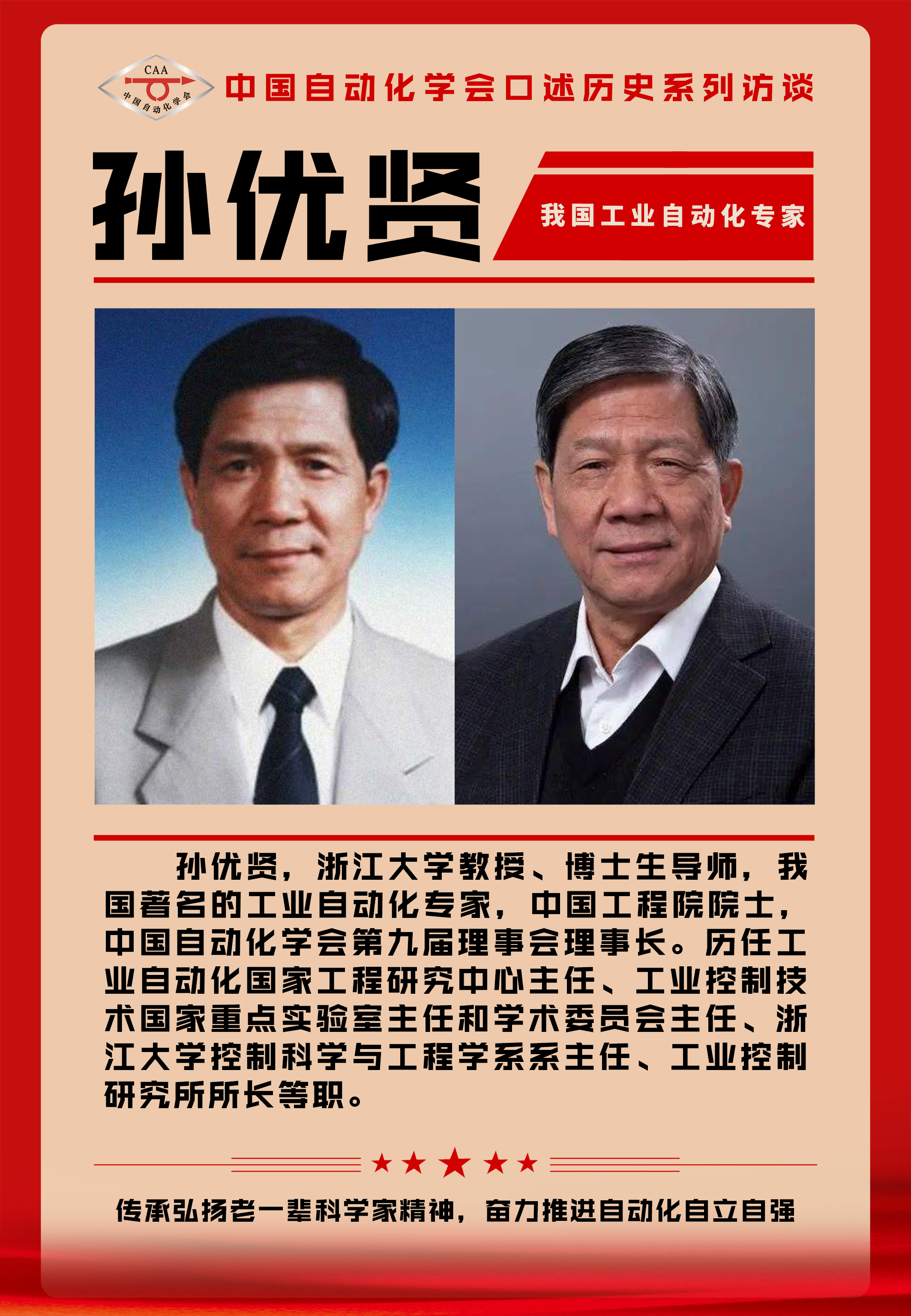 本期學(xué)會(huì)采訪的是孫優(yōu)賢院士。孫優(yōu)賢,浙江大學(xué)教授、博士生導(dǎo)師,我國著名的工業(yè)自動(dòng)化專家,中國工程院院士,中國自動(dòng)化學(xué)會(huì)第九屆理事會(huì)理事長。歷任工業(yè)自動(dòng)化國家工程研究中心主任、工業(yè)控制技術(shù)國家重點(diǎn)實(shí)驗(yàn)室主任和學(xué)術(shù)委員會(huì)主任、浙江大學(xué)控制科學(xué)與工程學(xué)系系主任、工業(yè)控制研究所所長等職。