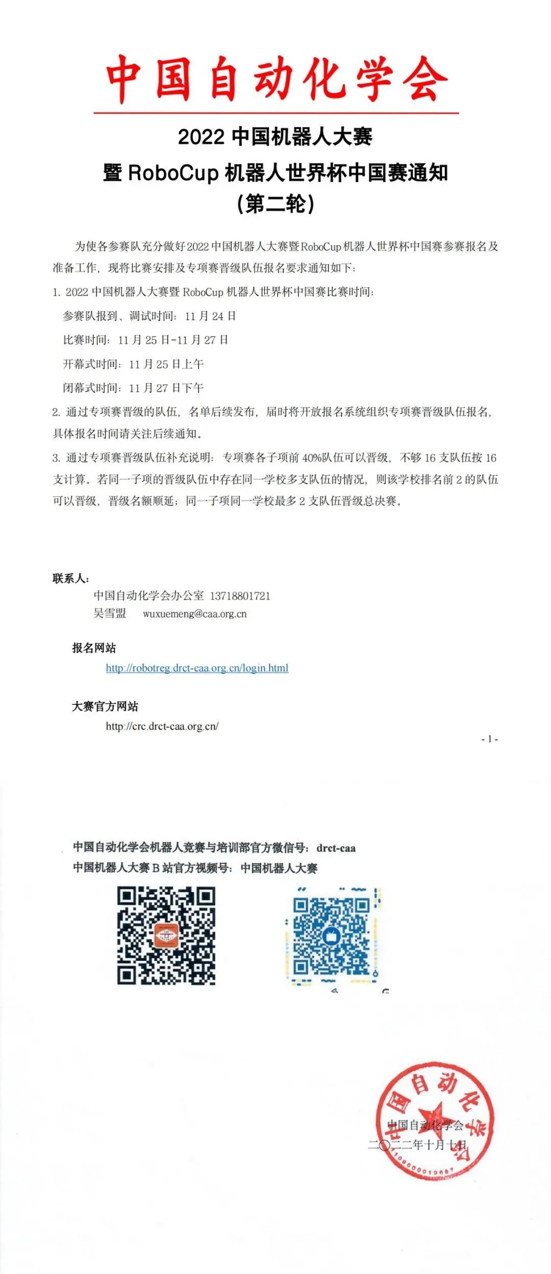 2022中國機器人大賽暨RoboCup機器人世界杯中國賽通知(第二輪)現已發布,請仔細閱讀下方文件。