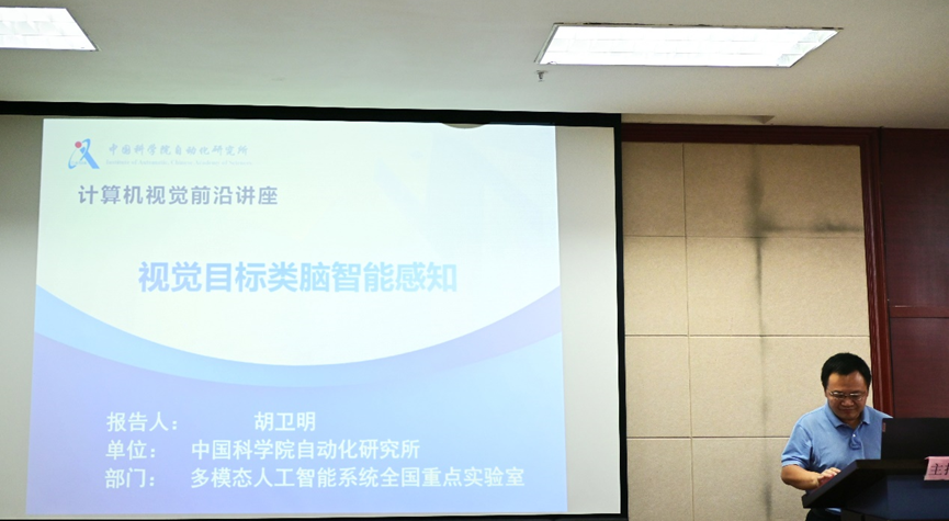 中科院自動化所胡衛明研究員作了題為“目標視覺類腦智能感知技術”的報告,分析了神經科學與計算機視覺之間的關系,并從六個方面總結了神經科學對計算機視覺的啟發。同時,介紹了本團隊基于深度時空自組織神經網絡的運動檢測、基于編解碼孿生神經網絡的目標跟蹤等方面的研究工作,以及在手機特定視頻檢測裝備、網絡直播智能審核系統和網絡內容智能審核系統等實際應用方面的工作。胡衛明研究員的報告具有很強的實際應用背景,對我們開展應用落地的研究具有很大的啟發。