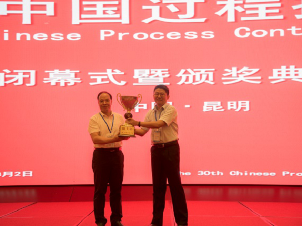 在頒獎結束之后,大會舉行了中國過程控制會議交接儀式;昆明理工大學代表本屆會議承辦方昆明理工大學,將中國過程控制會議“陽光杯”傳遞給下屆會議承辦方中國礦業大學代表,宣告第30屆中國過程控制會議勝利閉幕。