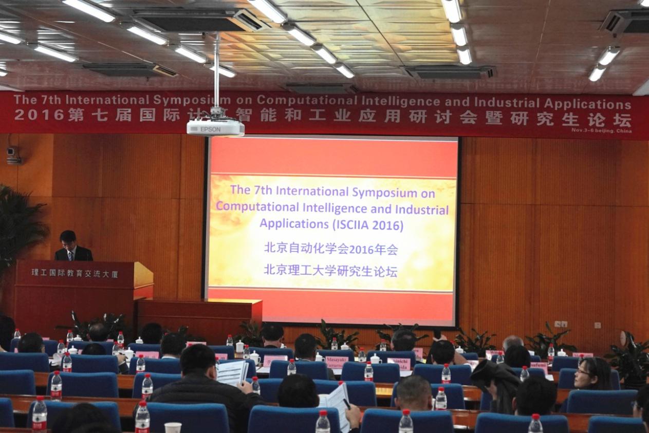 第七屆國際計算智能與工業應用研討會(7th International Symposium on Computational Intelligence and Industrial Applications, ISCIIA2016)暨2016年度北京自動化學會學術年會于2016年11月3至6日在北京理工大學國際教育交流大廈成功舉行。會議由北京自動化學會(BAA)、北京理工大學(BIT)、國際模糊系統協會(IFSA)、日本模糊論與智能信息學學會(SOFT)、日本學術振興會(JSPS)主辦,日本富士技術出版社、凱蒂亞半導體制造設備有限公司協辦,歐姆龍自動化(中國)有限公司贊助,海內外35所高校和科研單位的近200名專家學者參加了本次大會。本次會議包括16組口頭報告,主題分別為自適應學習系統、控制理論與應用、模糊與神經系統、遺傳算法與進化計算、機器人、不確定性動態狀態估計、人機交互、信號與圖像處理等。