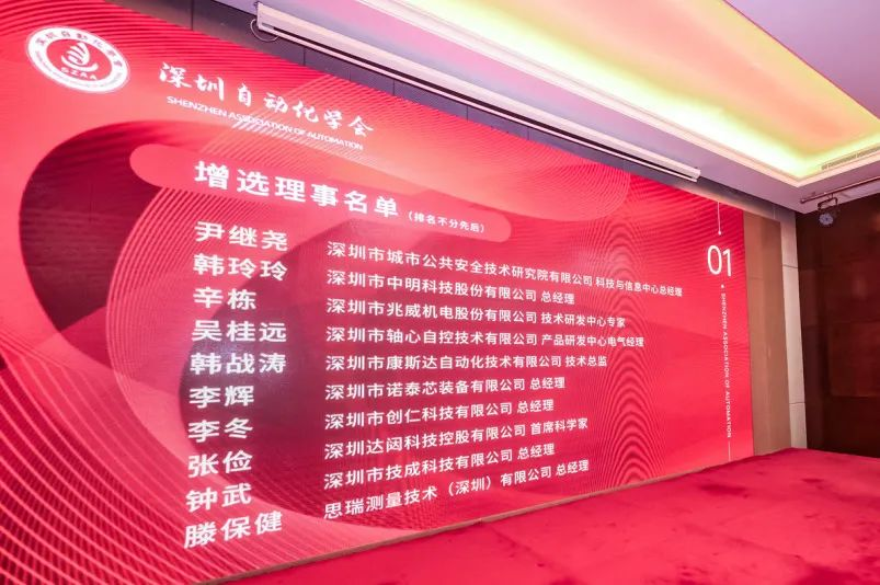 會上根據《深圳自動化學會章程》、《深圳自動化學會民主選舉制度》等辦法進行增選(變更)理事及常務理事,經全體會員代表無記名選舉新增10名理事(以下排名不分先后),分別是深圳市城市公共安全技術研究院有限公司科技與信息中心總經理尹繼堯,深圳市中明科技股份有限公司總經理韓玲玲,深圳市兆威機電股份有限公司技術研發中心專家辛棟,深圳市軸心自控技術有限公司產品研發中心電氣經理吳桂遠,深圳市康斯達自動化技術有限公司技術總監韓戰濤,深圳市諾泰芯裝備有限公司總經理李輝,深圳市創仁科技有限公司總經理李冬,深圳達闥科技控股有限公司首席科學家張儉,深圳市技成科技有限公司總經理鐘武,思瑞測量技術(深圳)有限公司總經理滕保健。另深圳市保安服務公司安防科技分公司變更理事候選人,經理廖思源當選為學會理事。