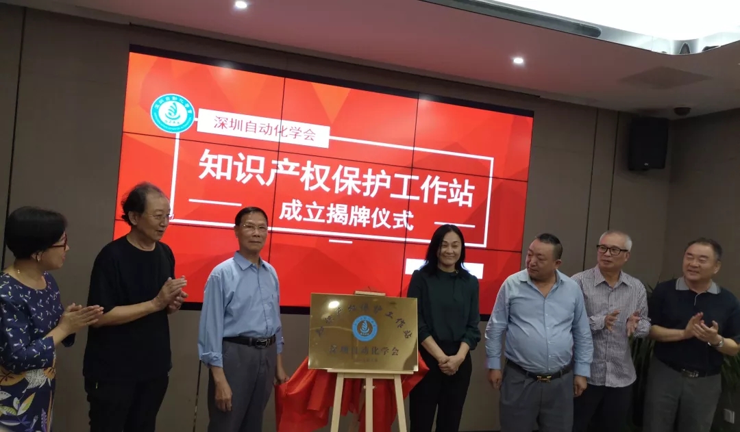 隨后,楊科長、杜會長以及學會其他領導代表一同為深圳自動化學會知識產權保護工作站進行揭牌。