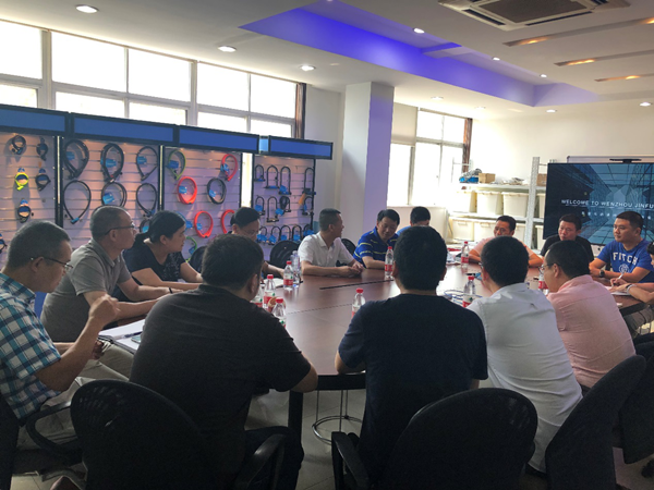 為助力2019年世界青年科學家(溫州)峰會甌海分會場活動建設,應溫州市甌海區科協邀請,浙江省自動化學會開展”企業走訪、需求排摸、產業對接”的工作。浙江省自動化學會副秘書長、浙江大學控制學院徐巍華副教授,溫州大學電氣與電子工程學院汪鵬君院長、阮秀凱教授、張正江、李晗、楊衛波、金才壟等博士,杭州自動化技術研究院褚思真高級工程師,溫州職業技術學院電氣電子工程系主任蘇紹興教授,杭州東駿科技有限公司鄭永樂經理及學會秘書處白晶晶等12人赴溫州市甌海區開展智能鎖產業調研活動。