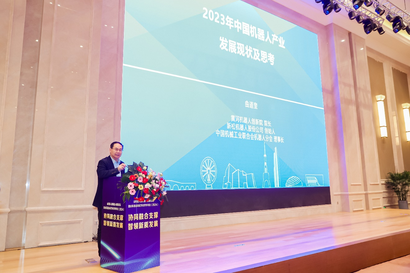 中國(guó)科學(xué)院教授、博士生導(dǎo)師,新松機(jī)器人公司創(chuàng)始人,黃河機(jī)器人創(chuàng)新院院長(zhǎng)曲道奎作題為“中國(guó)機(jī)器人產(chǎn)業(yè)發(fā)展現(xiàn)狀與分析”的報(bào)告。報(bào)告從我國(guó)及全球機(jī)器人發(fā)展歷史、現(xiàn)狀,以2023年中國(guó)機(jī)器人產(chǎn)業(yè)數(shù)據(jù)、產(chǎn)業(yè)展指數(shù)分析等研判了中國(guó)機(jī)器人產(chǎn)業(yè)的市場(chǎng)特點(diǎn)及走勢(shì),報(bào)告對(duì)全球工業(yè)機(jī)器人市場(chǎng)的走勢(shì)做出研判及中國(guó)工業(yè)機(jī)器人市場(chǎng)隨著宏觀經(jīng)濟(jì)政策與產(chǎn)業(yè)政策持續(xù)發(fā)力與顯效,市場(chǎng)有望向好,市場(chǎng)潛力巨大的研判。