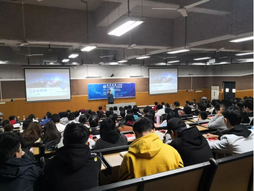 艾老師主講的內容主要分為三個部分:工業互聯網的發展背景、平臺架構內涵和關鍵技術等。艾老師具有豐富實戰經驗,設計、實施過多個行業的自動化、智能化工程項目,并進行深入的研究和總結,如:樓宇、軌道交通、食品、醫藥、冶金等行業。在給同學們的演講中,除講解當前的工業互聯網技術,同時把自己的項目實施經驗與同學們分享,比如人工智能如何實現果凍中異物識別、工業互聯網平臺的工業APP開發等,讓沒有走向工作崗位的學生聽得入神。講到5G商用、IPV6的推廣,怎樣才能實現真正的萬物互聯等,我們發現了聽眾中有些“愛琢磨”的同學。