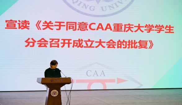 張楠秘書長宣讀《關于同意CAA重慶大學學生分會召開成立大會的批復》