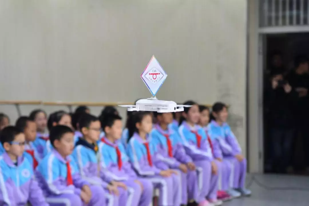 北京航空航天大學無人機培訓基地團隊在活動現場展示了無人機編隊。伴隨現場的動感音樂,無人機時而一字排開,時而拼成字母,學生們一下子就被這些飛在半空中的白色“小精靈”吸引,展示結束后仍舊意猶未盡。