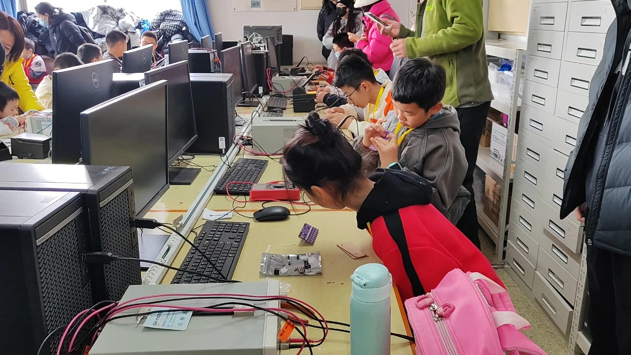參觀結束后,孩子們分為三組,在理工大學三個教室里制作兩個科技作品。大多數孩子,都是首次接觸焊接,很新奇也具有挑戰性。當作品完成時,看到孩子們露出的笑臉,老師和家長們也都感受到了那種成功的快樂。